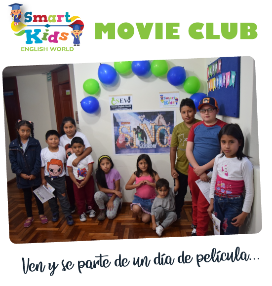 Como SMART KIDS nos interesamos por promover el aprendizaje del idioma Inglés mediante la diversión y cultura, por eso abrimos nuestro Movie Club Infantil. Este es un espacio de esparcimiento para que los niños puedan disfrutar de espectaculares películas animadas que más allá de divertirnos y sacar carcajadas por montones poseen mensajes, valores y pensamientos positivos para los niños/as como la PERSEVERANCIA, DISCIPLINA, PACIENCIA, AMOR, AMISTAD, SOLIDARIDAD, ESFUERZO, CREATIVIDAD, SINCERIDAD entre otros. Valores que actualmente se van perdiendo.